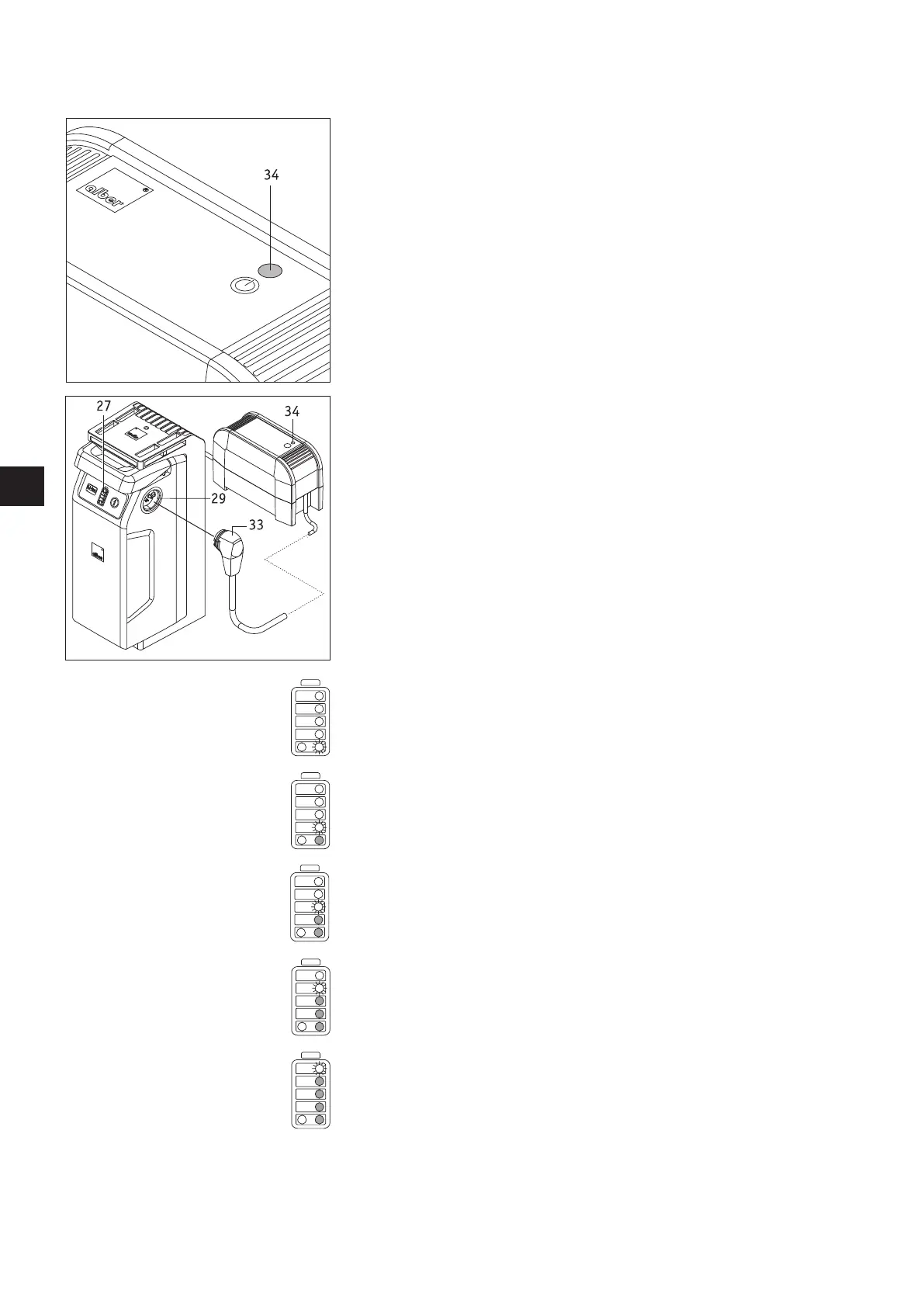 • Insert the plug of the charger [33] into one of the sockets [29] of the battery pack.