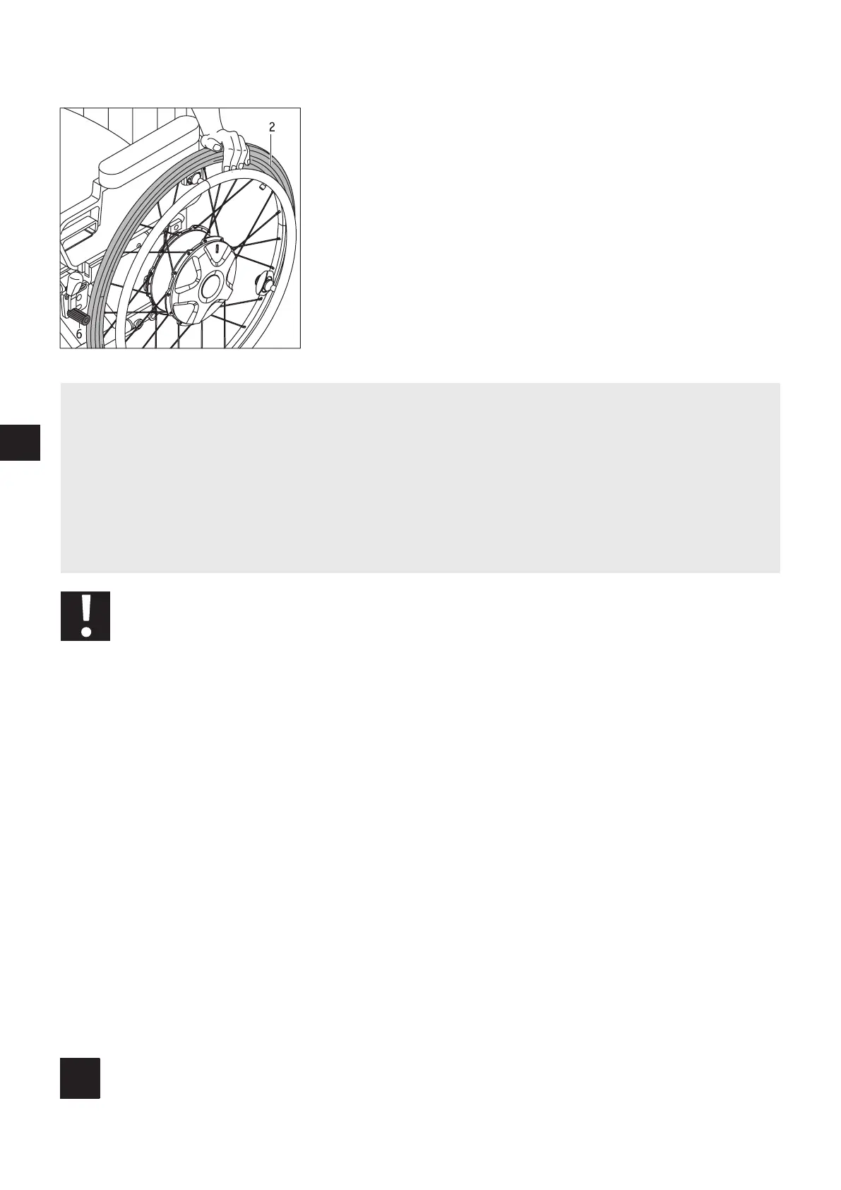 your wheelchair, or on the tyre [2] of the e-fix wheel.