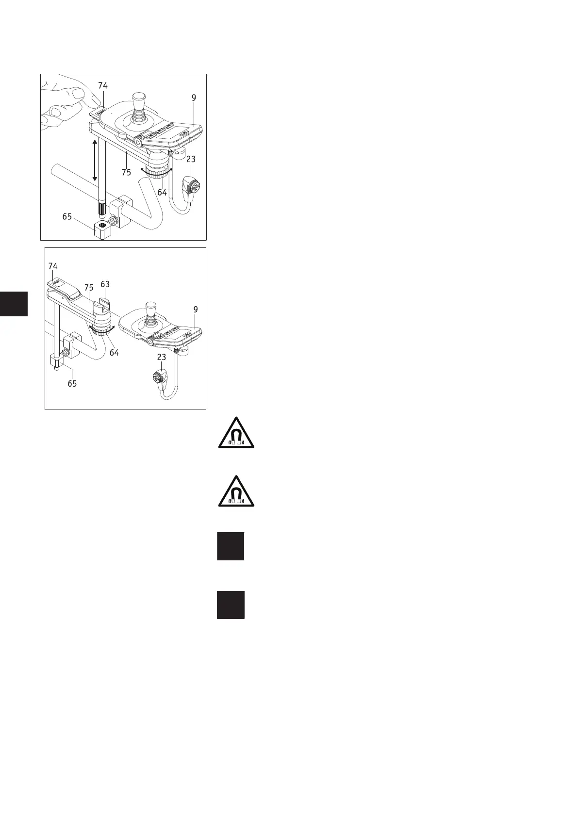 • If the swivel arm [75] is entirely removed together with the control unit [9], you can