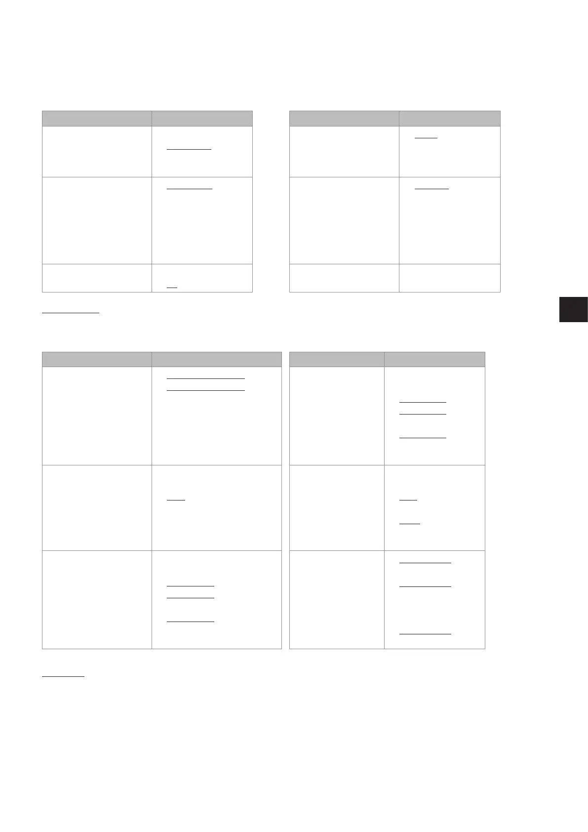 When the e-fix is initially delivered, the parameters visible in the table (bold and underlined) are predefined as the factory settings for