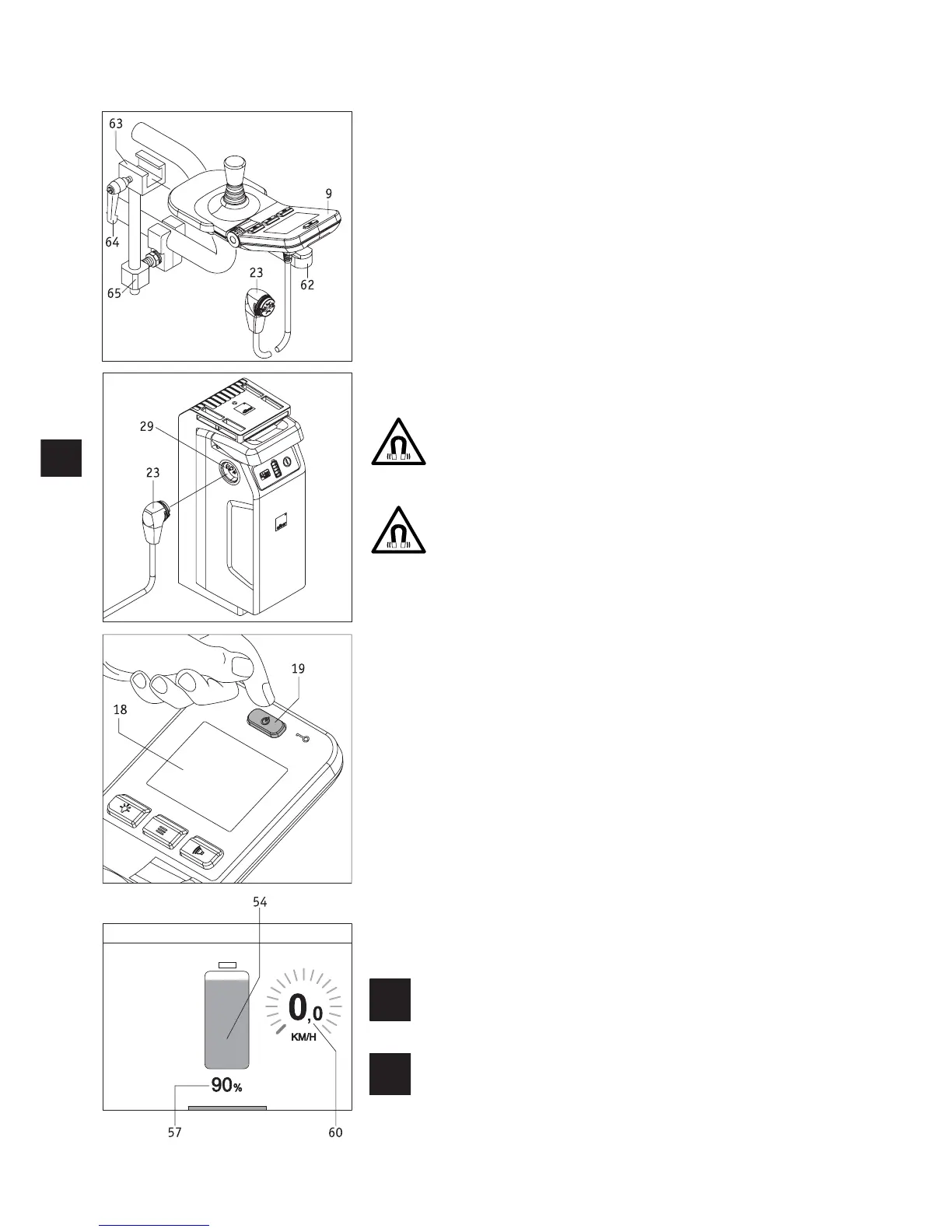 A holder [65] has been fitted to your wheelchair to secure the control unit.