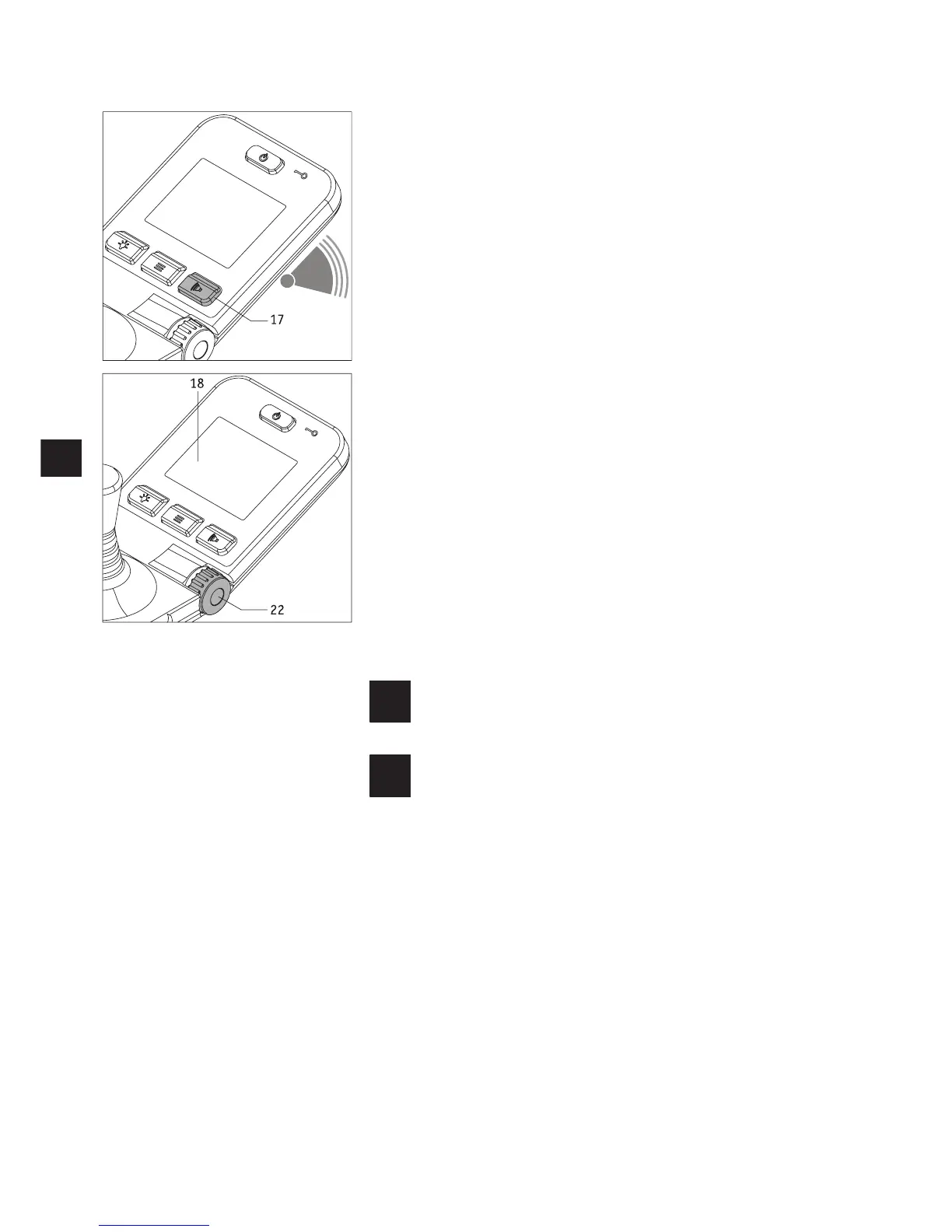 By pressing button [17] a warning signal sounds on the control unit.