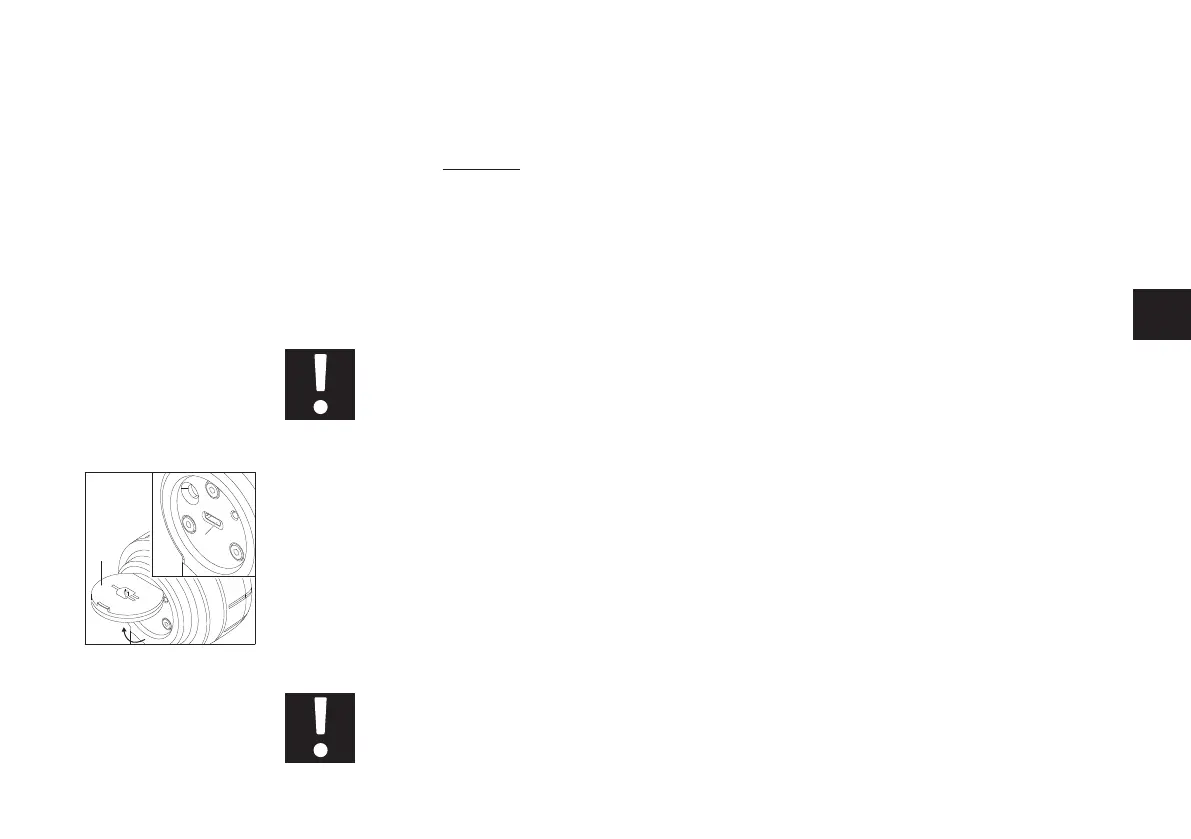 • Open the cover [18] and insert the USB charger cable into the charger socket [19]. This automatically