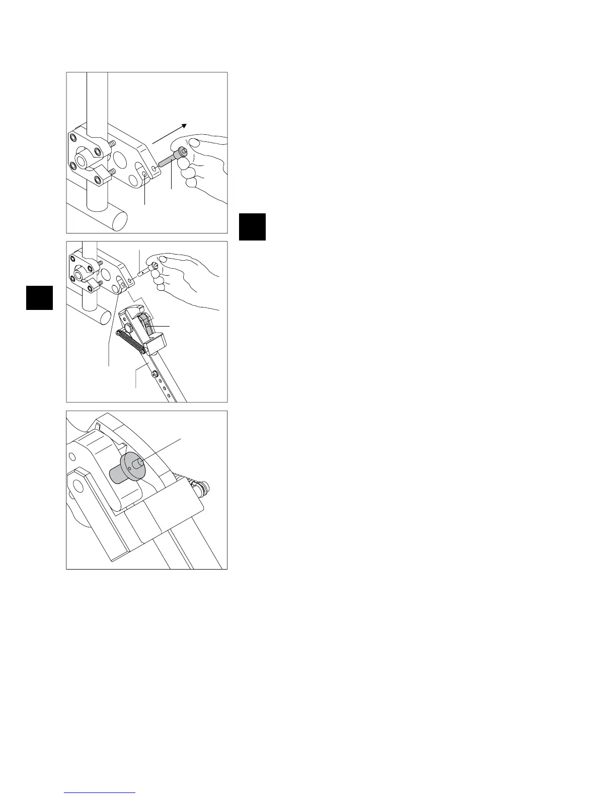 Lock the receiver for of the bracket [29] with the quickpin [28]. Press on the pin