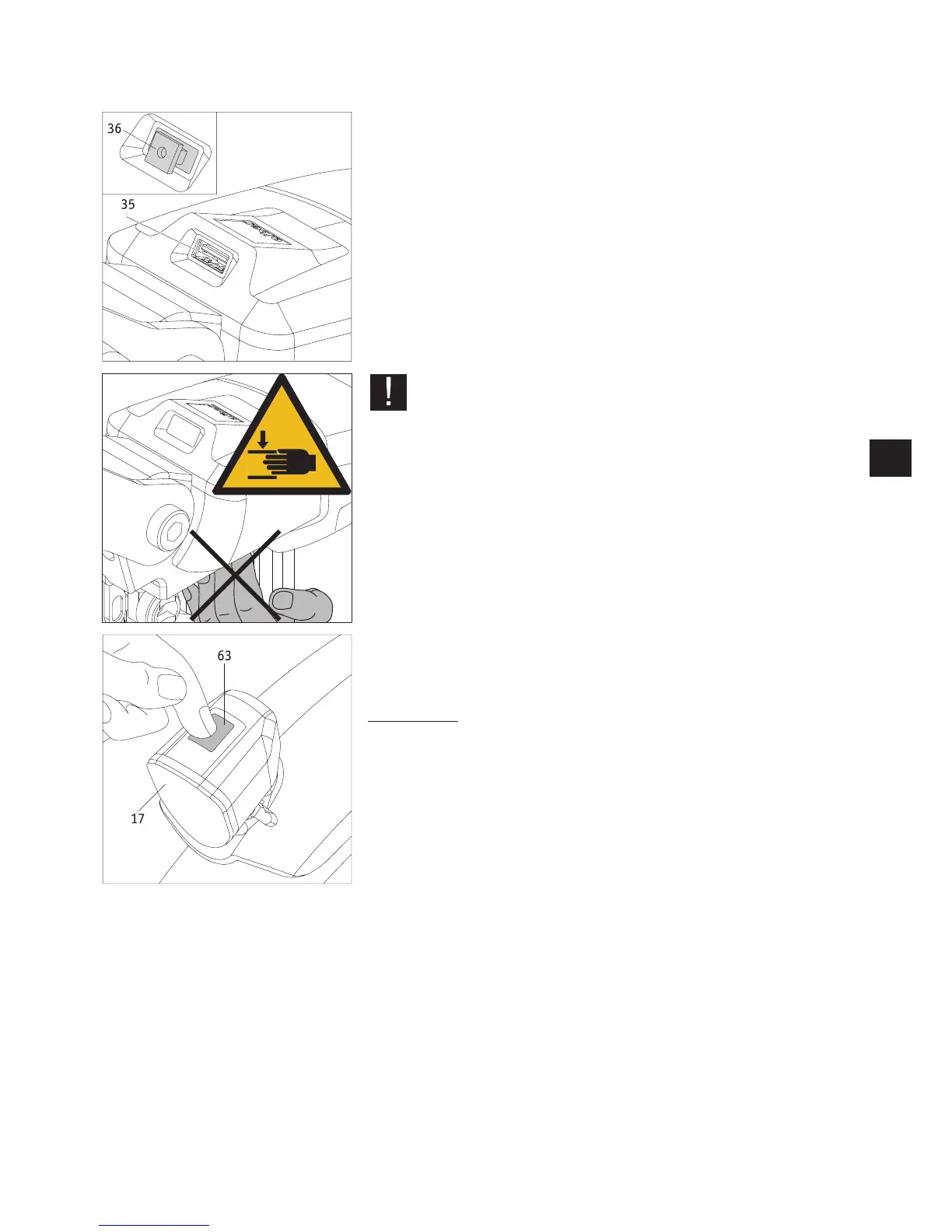 Never reach into the cover located below the USB port [35].