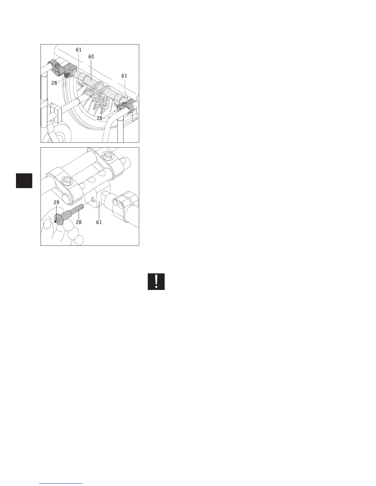 • Press your thumb on the release mechanism [29] in the centre of the quickpin [28]