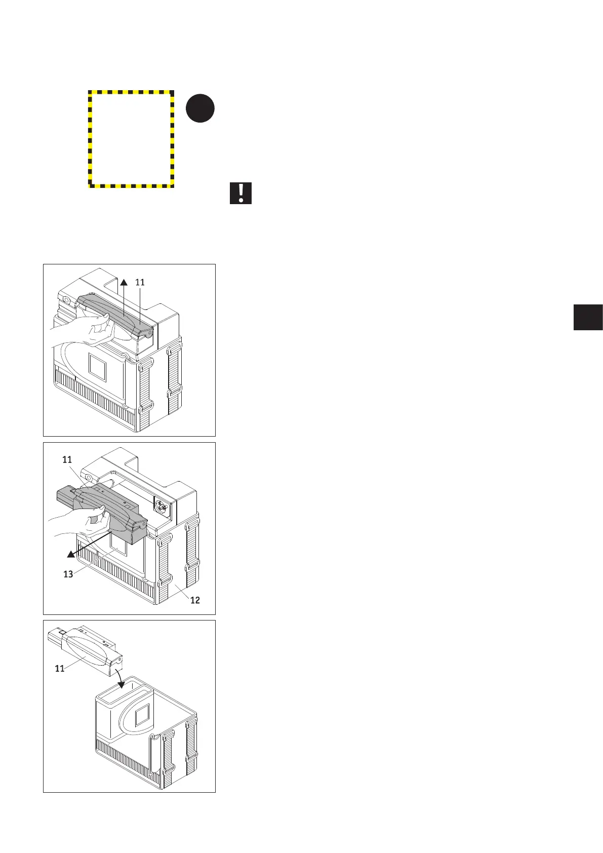 • Remove the interface [11] from the battery pack as shown in the adjacent diagrams.