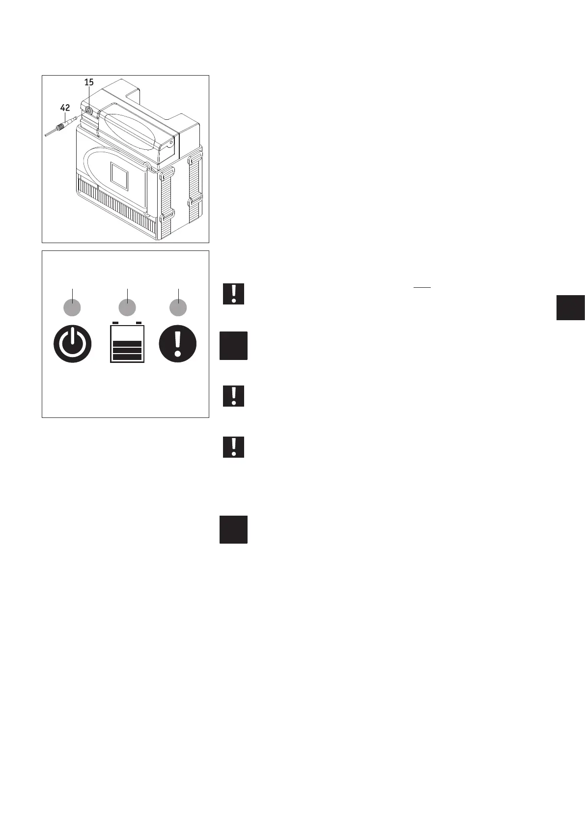 • Insert the charger plug [42] into the charger socket [15].