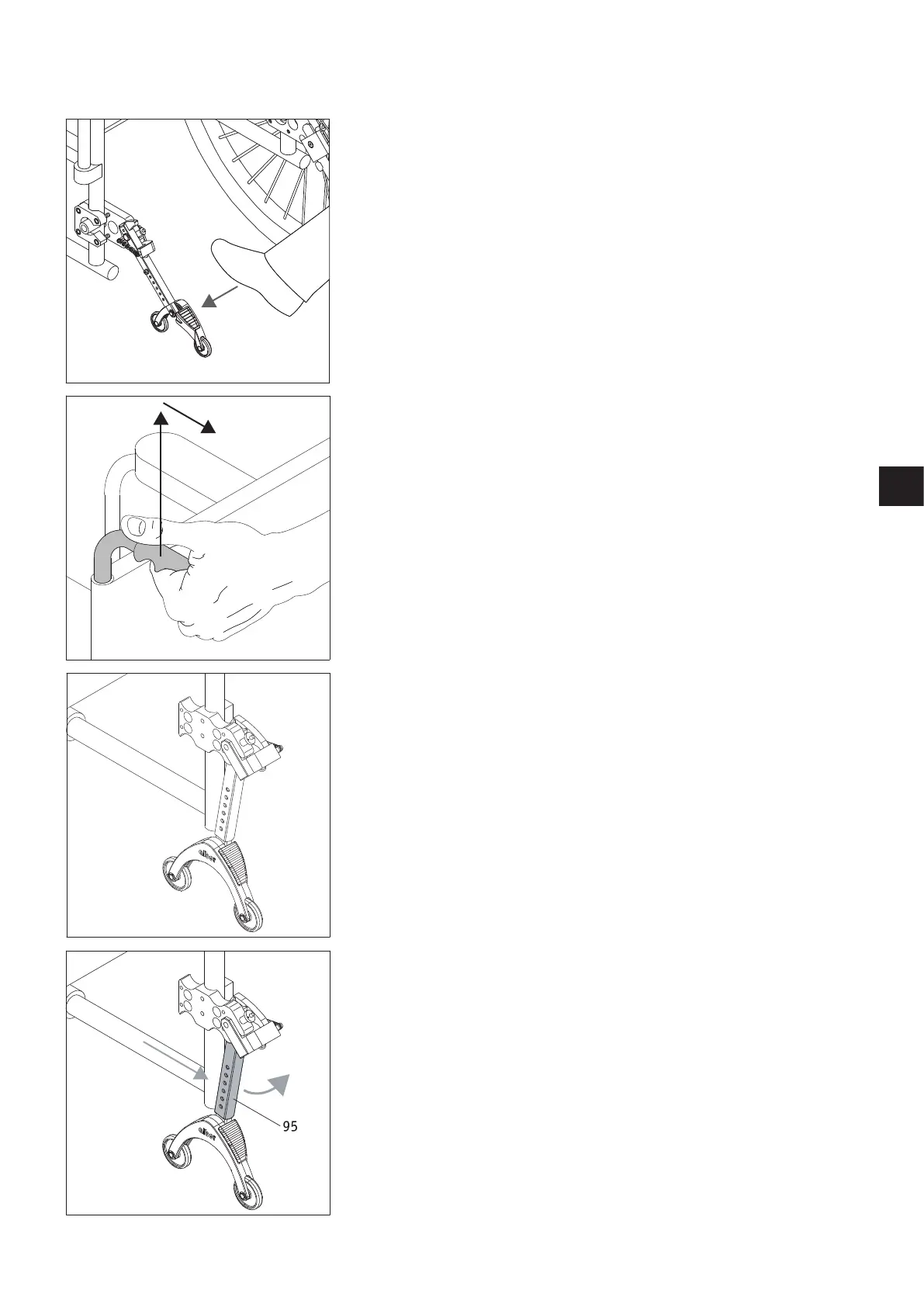 • Once the wheels are fitted, you can return the anti-tippers to their starting position.