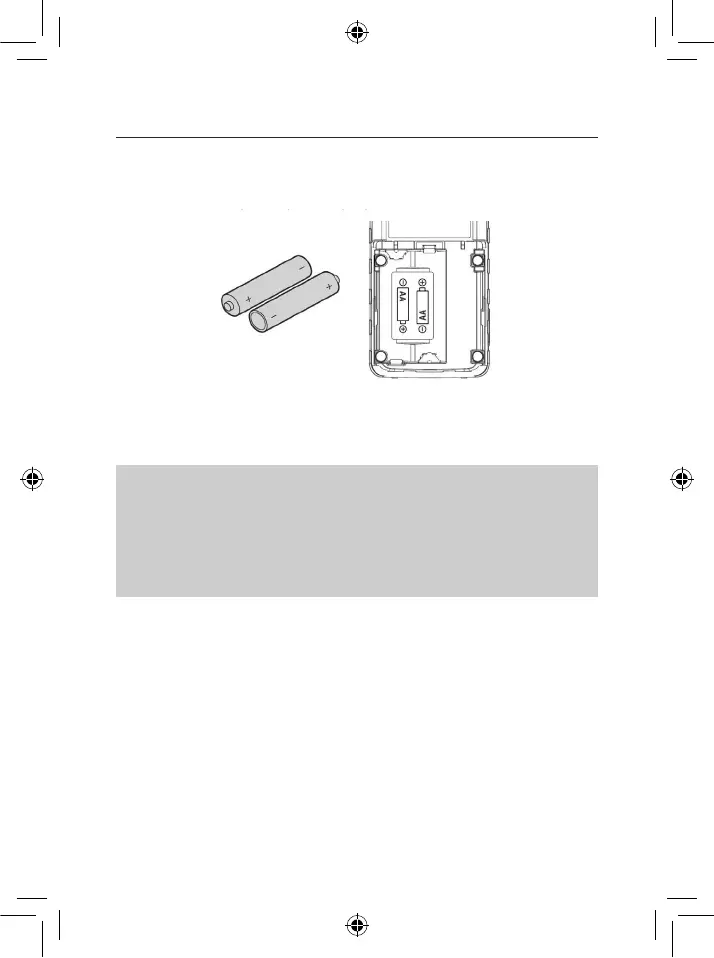 ! Install two AA batteries in the compartment as indicated by the polarity symbols (+