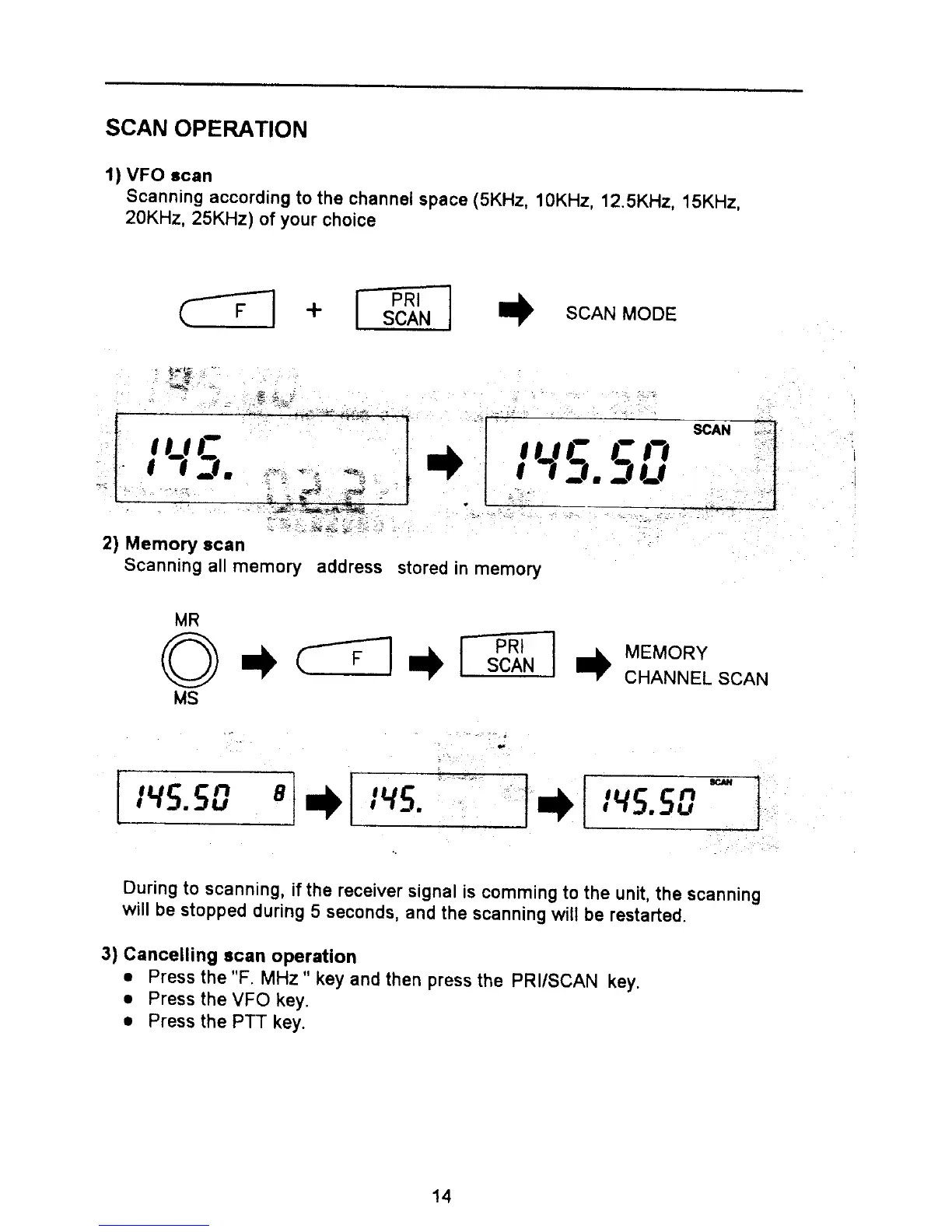 Albrecht AE 550 - Scan Operation Modes; VFO Scan; Memory Scan; Cancelling Scan Operation