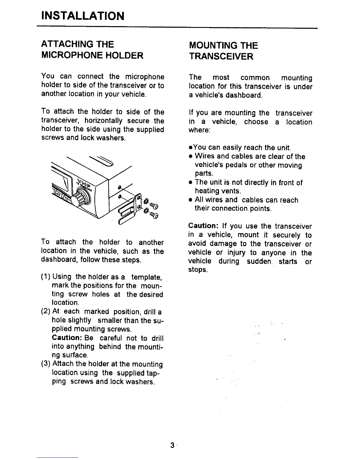 Albrecht AE 550 - Installation; Attaching the Microphone Holder; Mounting the Transceiver
