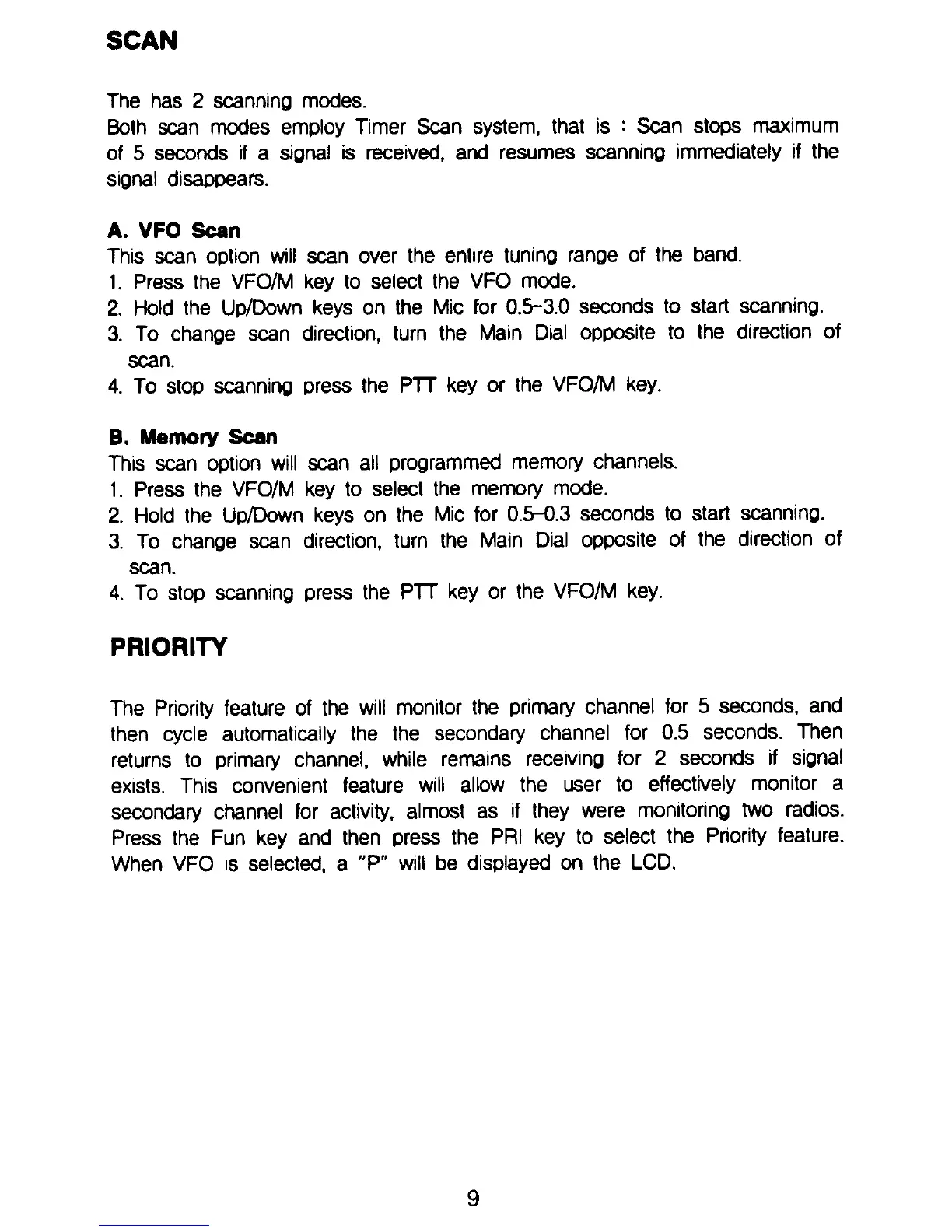 Albrecht AE 560 - Scan Modes; VFO Scan; Memory Scan; Priority, Lock, and Offset