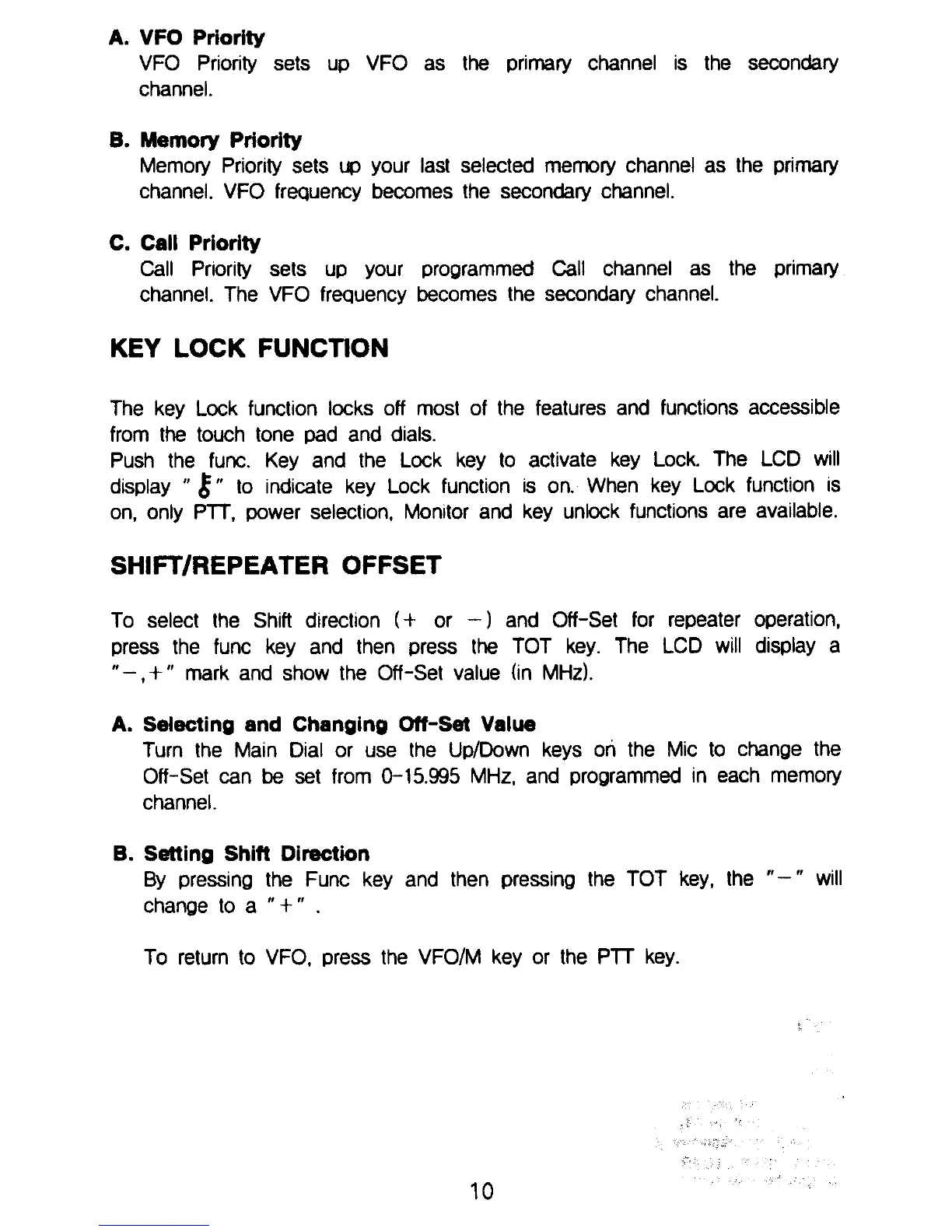 Albrecht AE 560 - VFO Priority; Memory Priority; Call Priority; Key Lock Function
