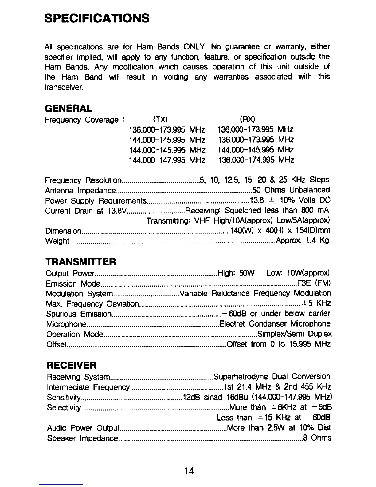 Albrecht AE 560 - Specifications; General Specifications; Transmitter Specifications; Receiver Specifications