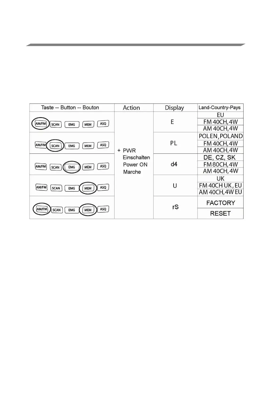 benutzt. Dies ist hilfreich, wenn das Funkgerät sich nicht normal bedienen lässt.