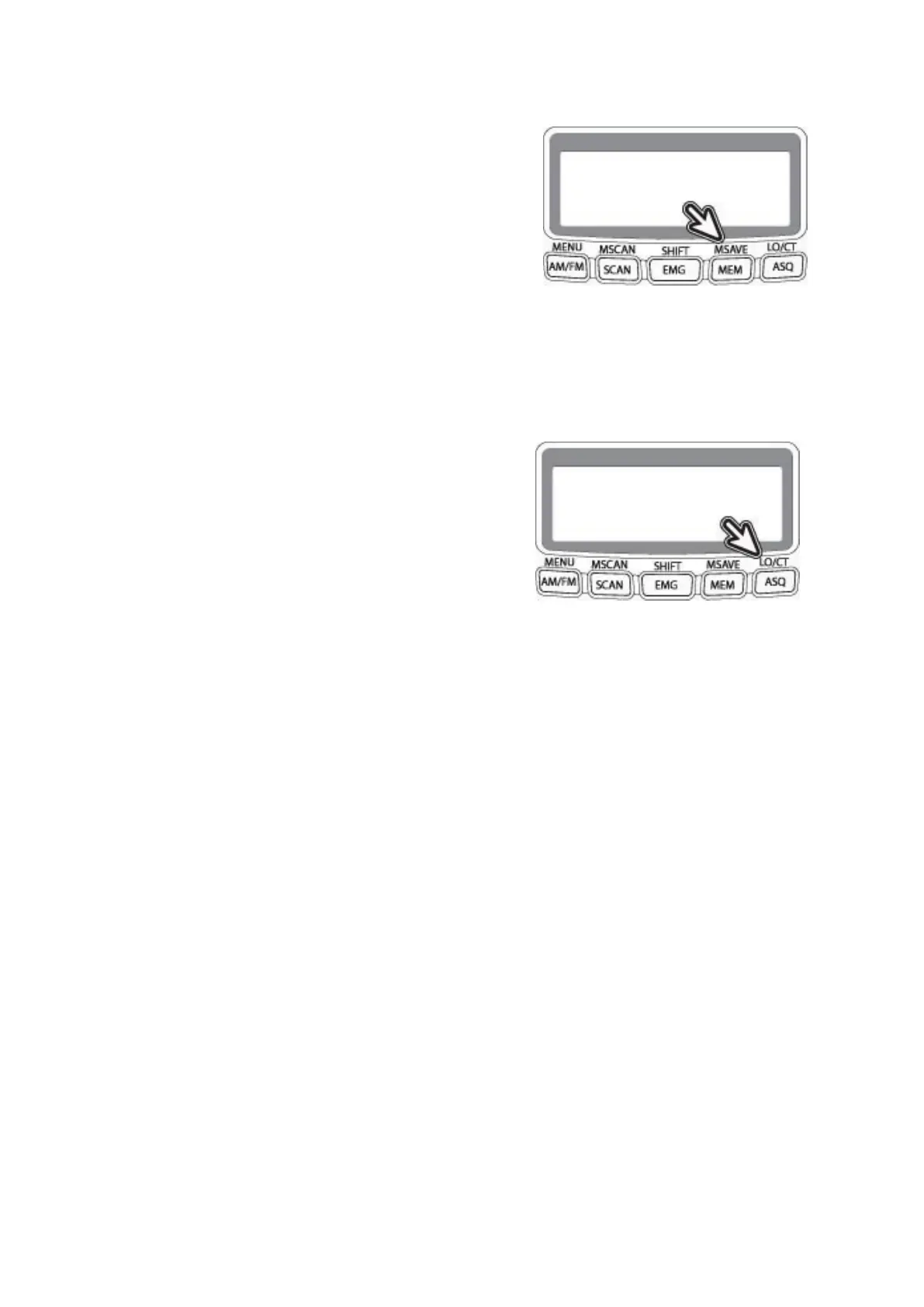 • Wählen Sie eine Speicherkanalnummer mit den Tasten MENU (M1) bis LO / CT