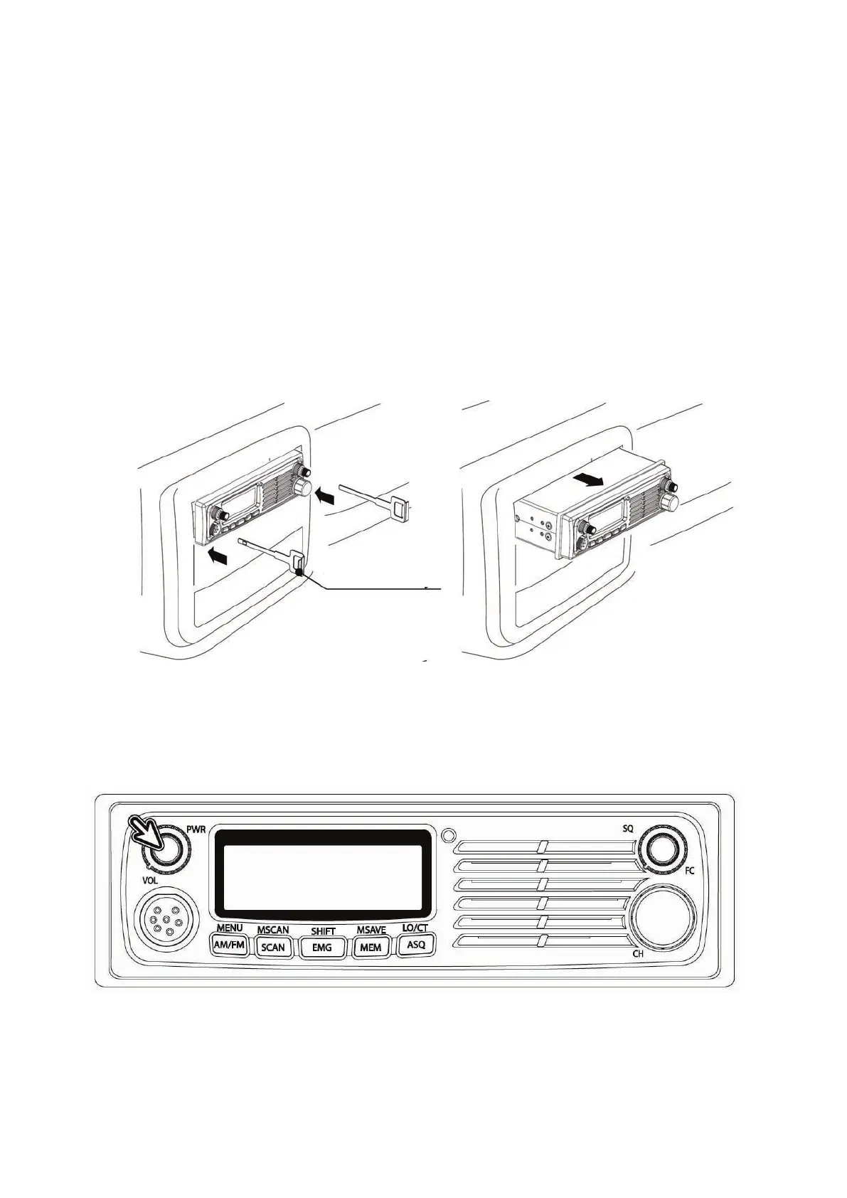 • Presione bien y la radio se desbloqueará del manguito haciendo posible la