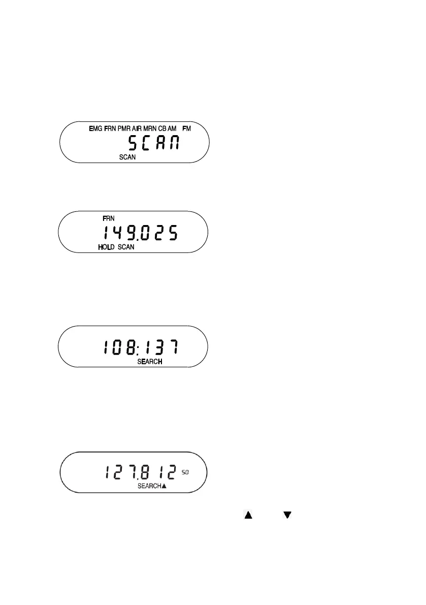 Albrecht AE355M - Display-Anzeigen; Speicherbereiche Scannen; Bänder Durchsuchen