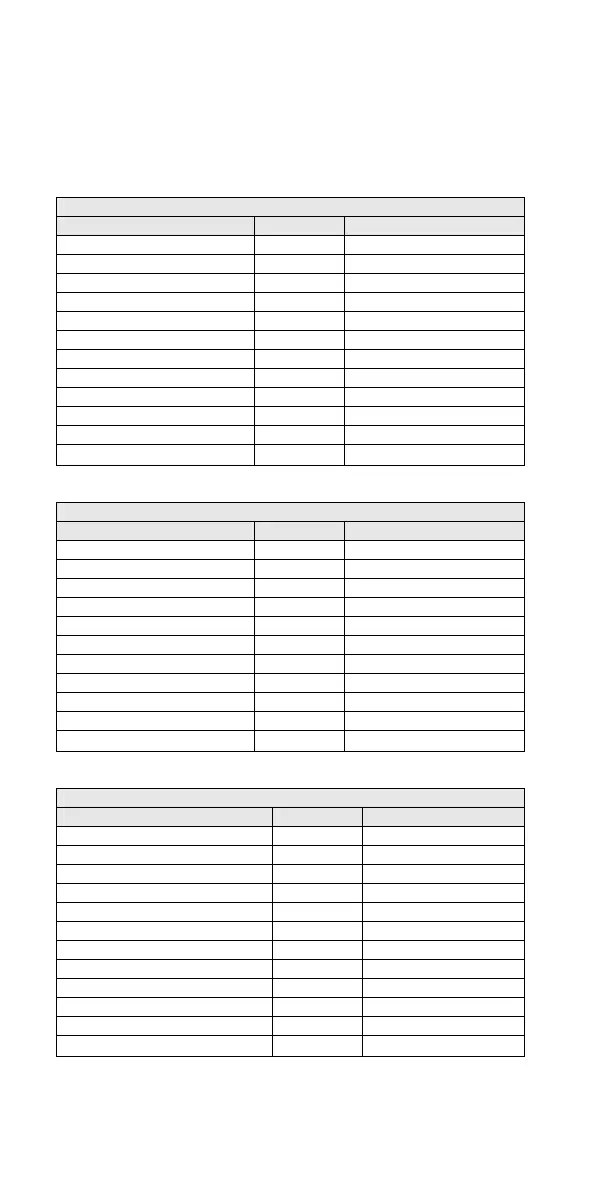 This table lists the frequency ranges, default frequency step