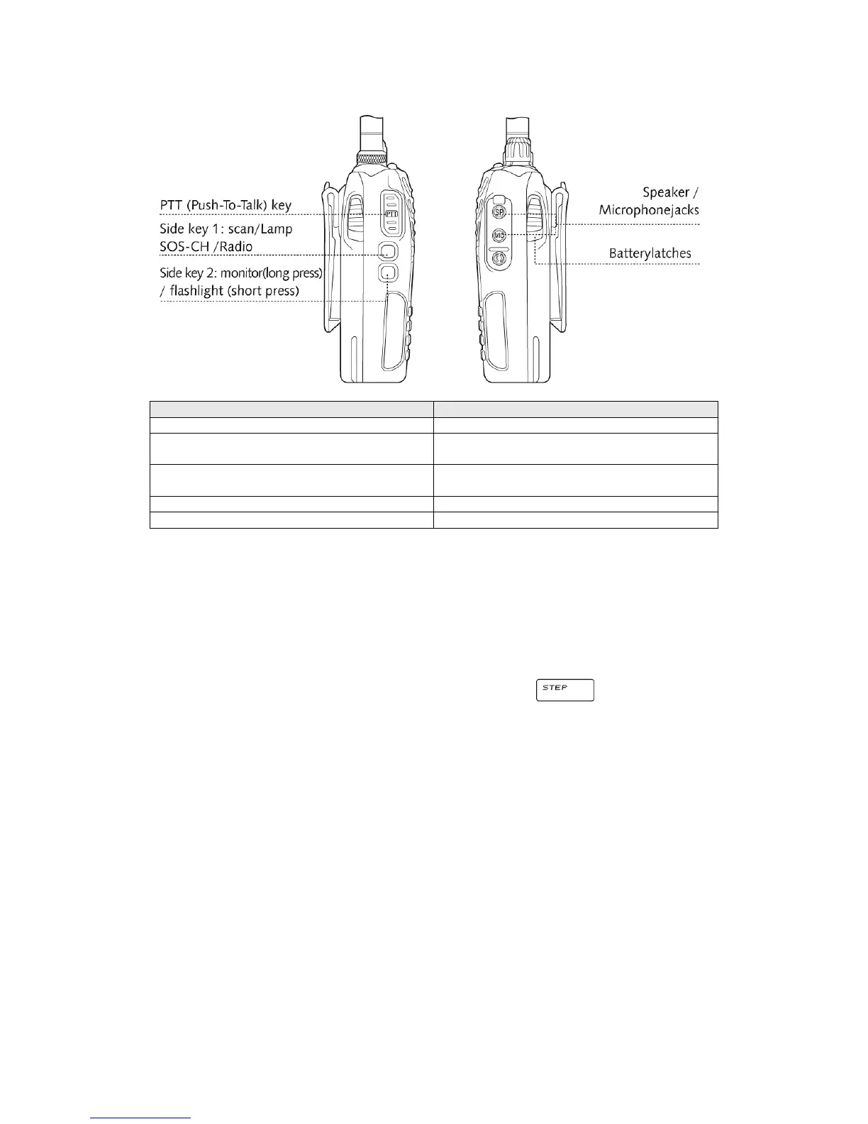 Side key 1: scan / Lam SOS-CH/Radio Seitliche Taste 1: Scan / Lampe SOS-
