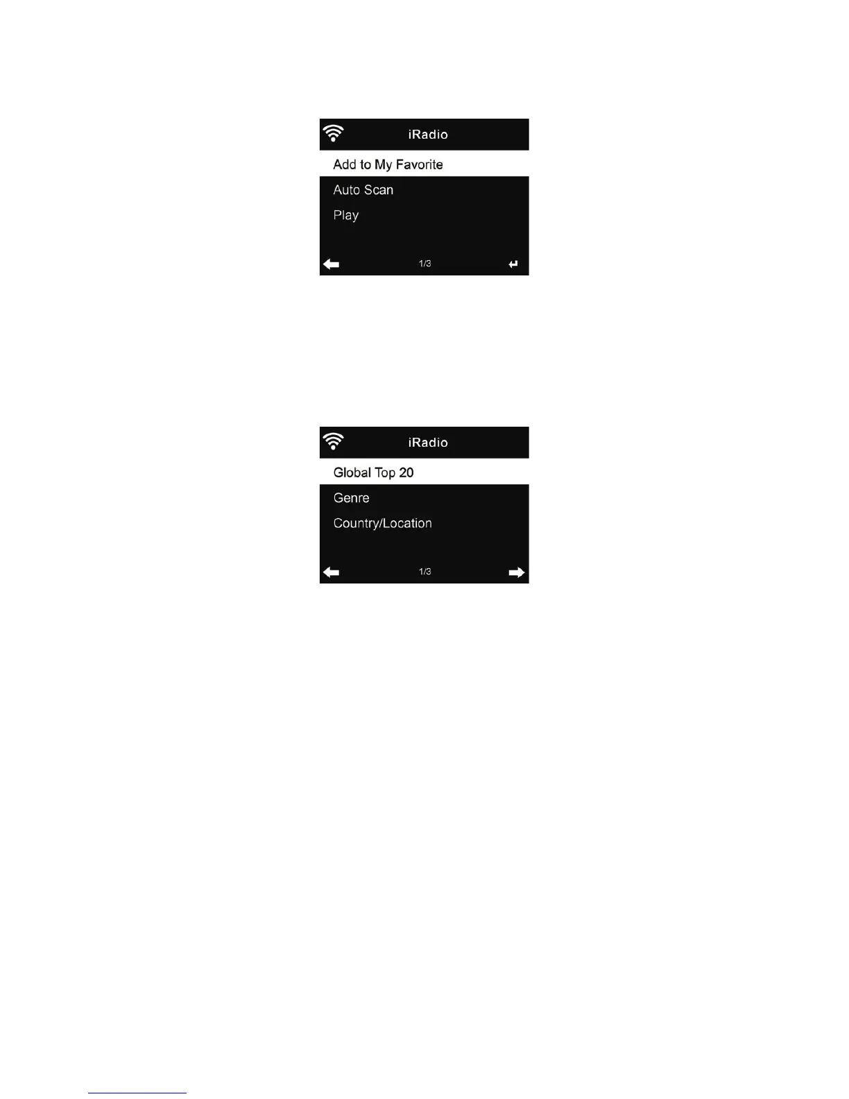 Les stations sont classées par Global Top 20, Genre et Country/Location. Il faut accéder pour