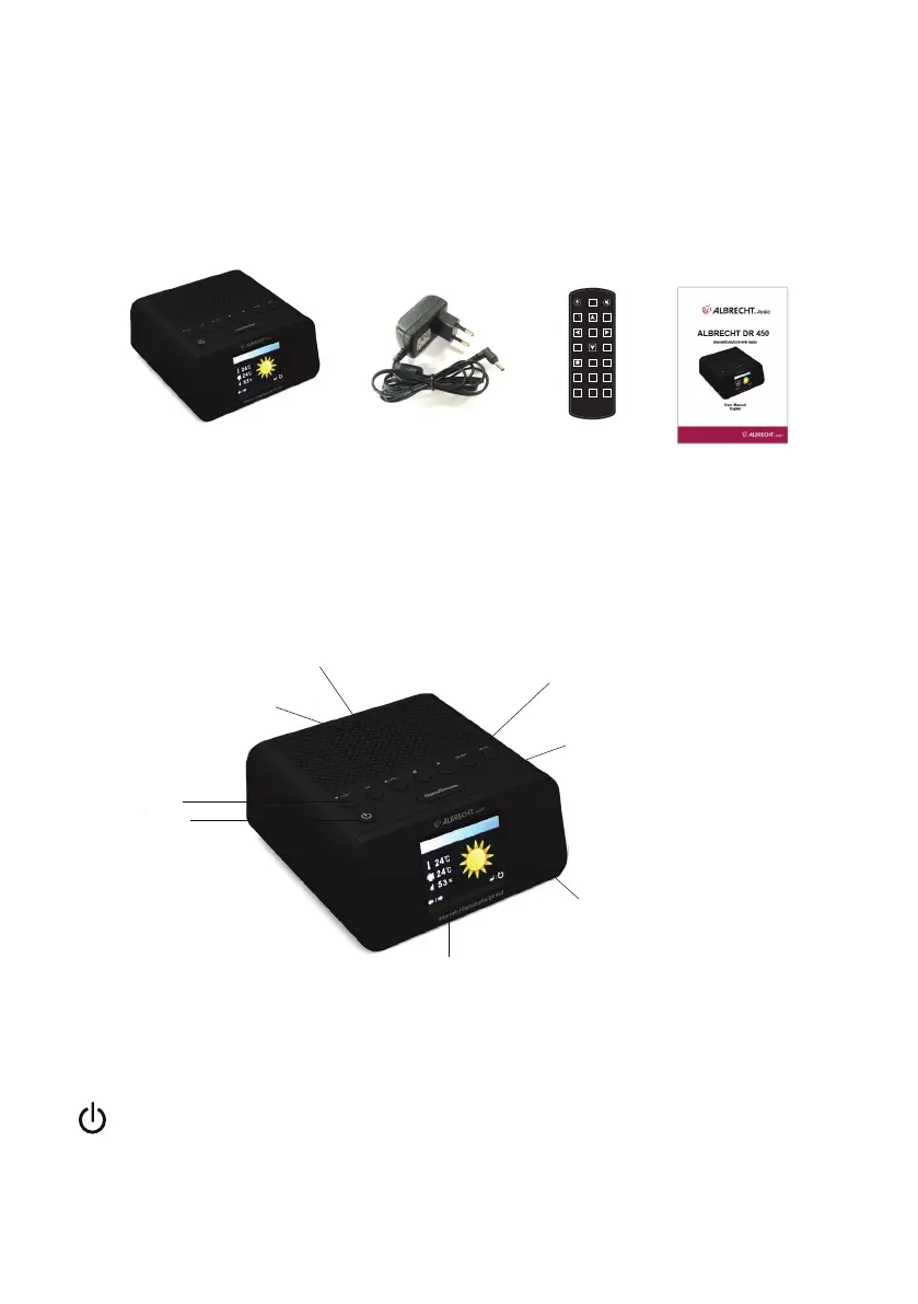 : Press to switch on/off the alarm clock radio