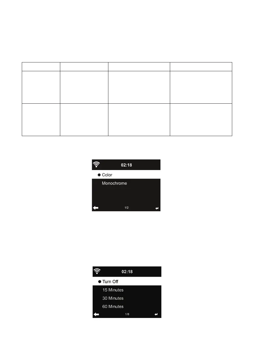 quando la radio entra in modalità standby o quando nessun tasto di input è premuto per 15 secondi.