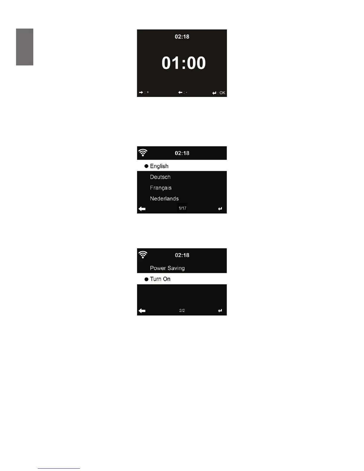 Wählen Sie eine Menü-Sprache: English / Deutsch / Español / Français / Português / Nederlands /