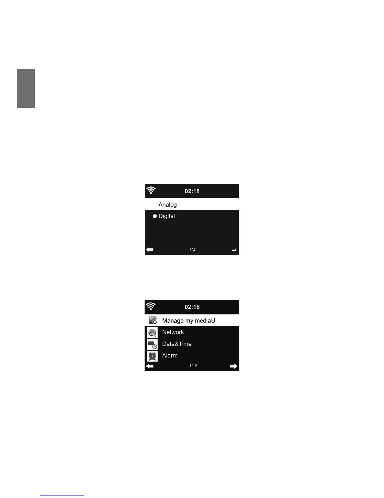 Choose the style of clock during standby mode: Analog or Digital.l