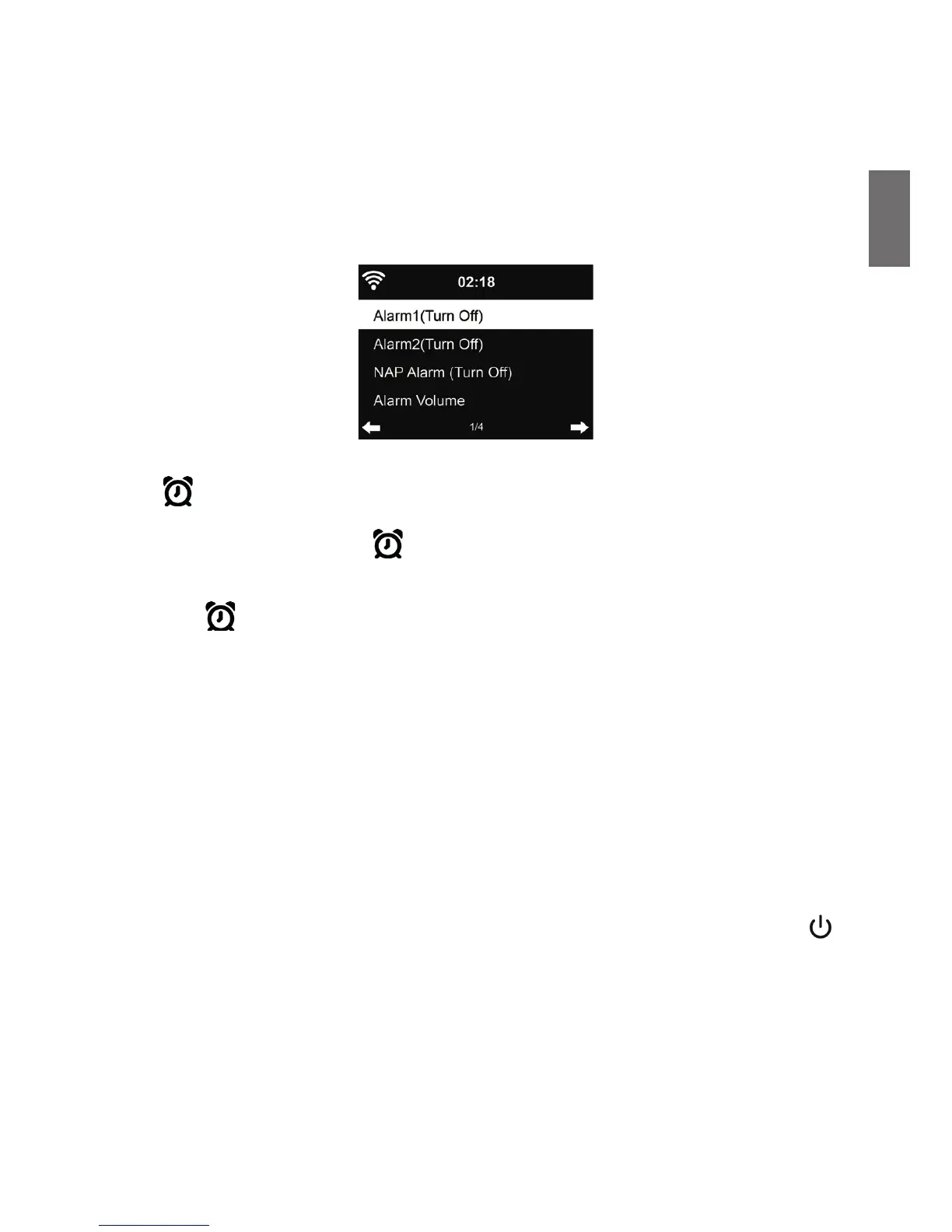 You can choose between 2 regular alarms (Alarm 1 and Alarm 2) or the NAP Alarm in this menu.