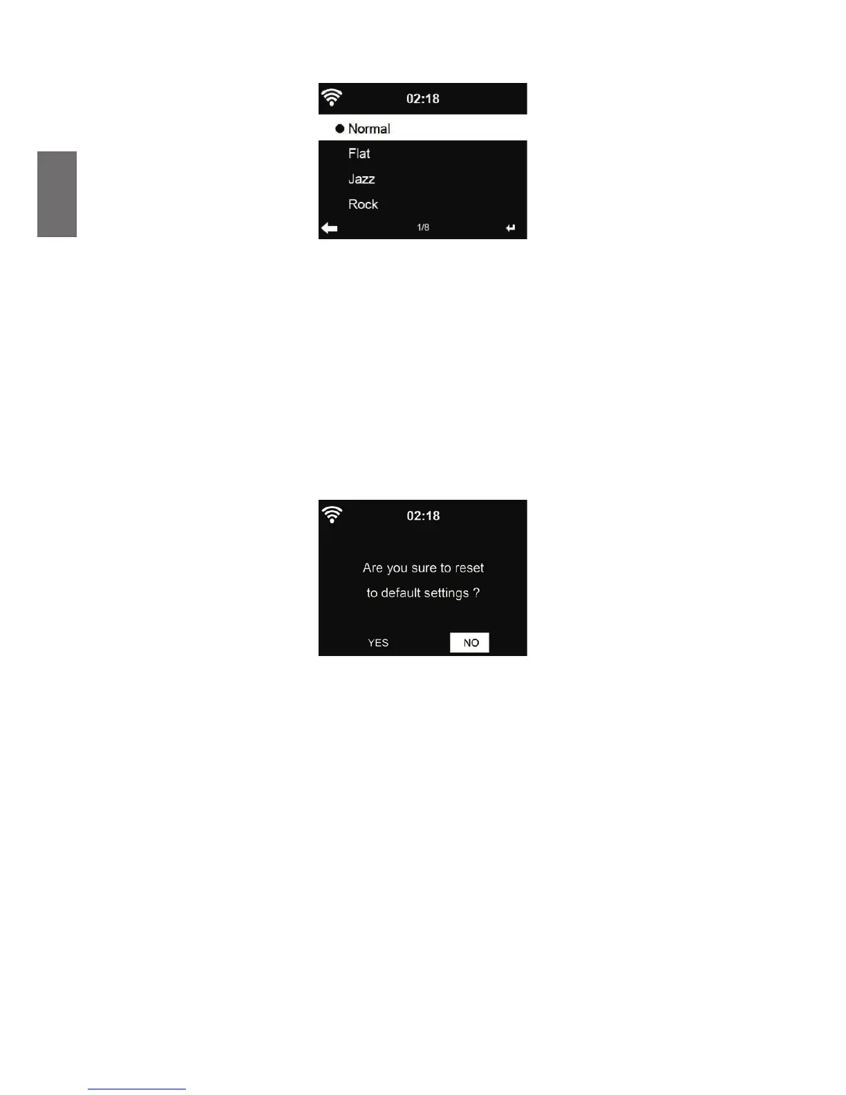 Default equalizer is Rock, you may change to Normal, Jazz, Flat, Soundtracks, Classical, Pop, or