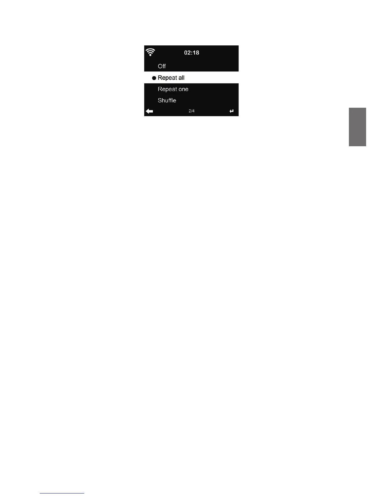Sélectionnez le mode de lecture du centre multimédia : Off (pas de répétition ou lecture aléatoire),