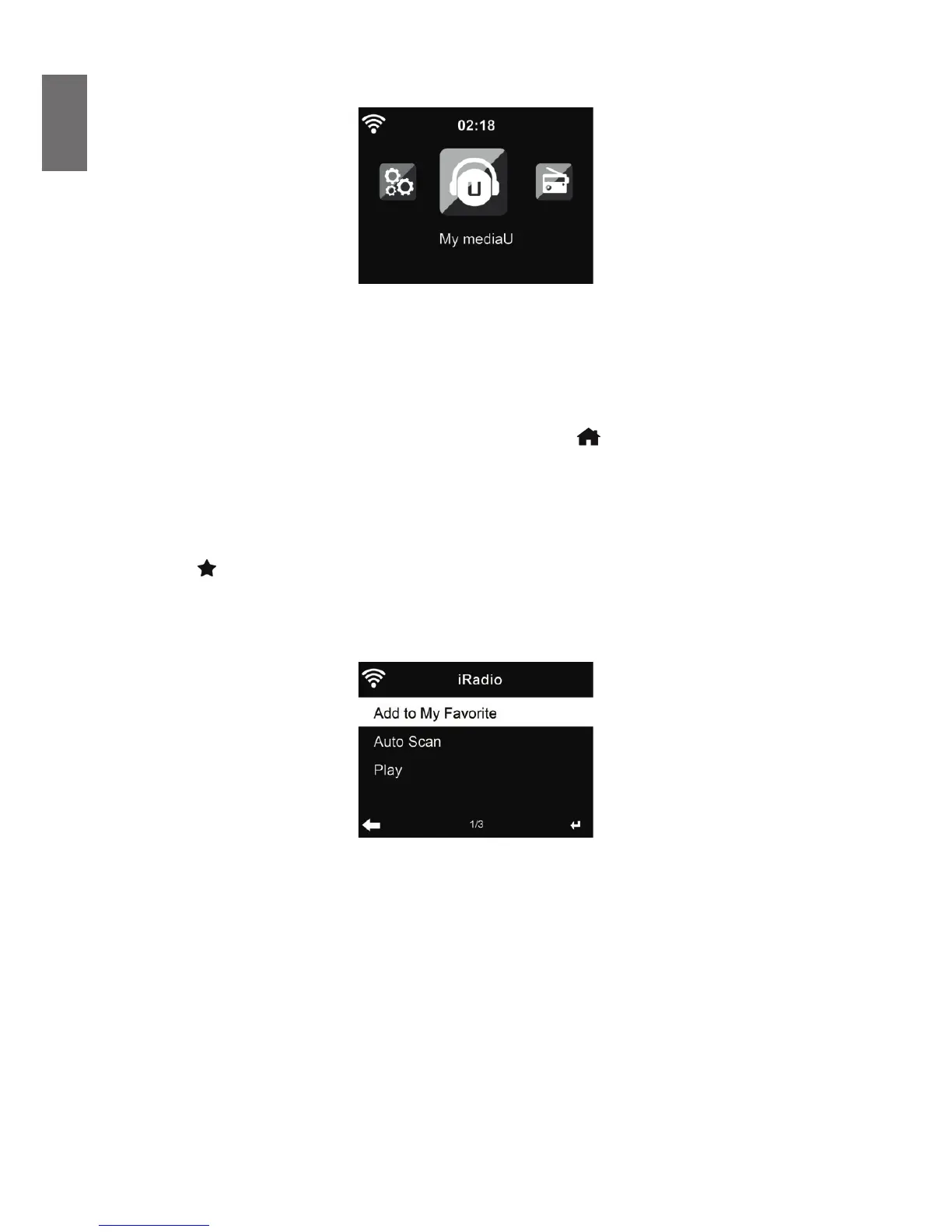 Im Hauptmenü können Sie folgende Betriebsmodi wählen: Internet Radio, Media-Center, FM