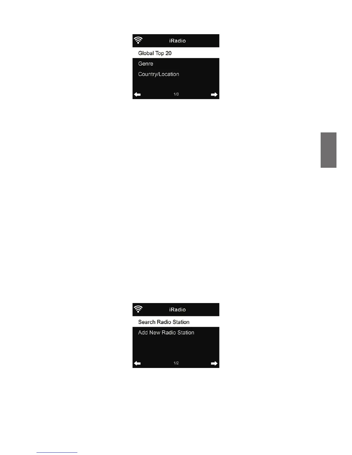 Le stazioni radio sono divise nelle seguenti categorie: Global Top 20, Genre e Country/Location.