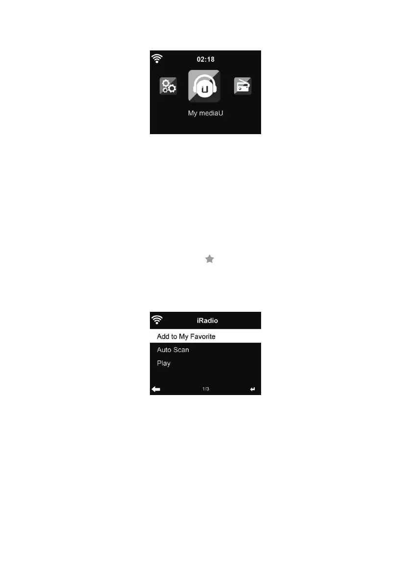 In the main menu you can select the following modes: My mediaU, Internet Radio, Media Center,