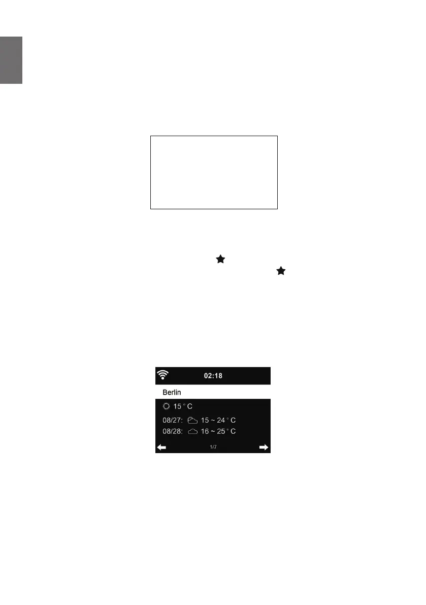 Drücken Sie◄/►, um die Wettervorhersage anzuzeigen.