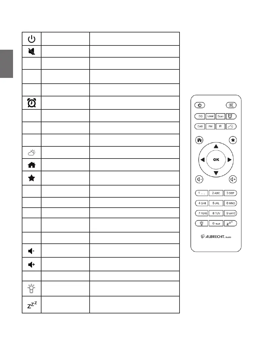 On/Off Turn the radio on or off (Standby)