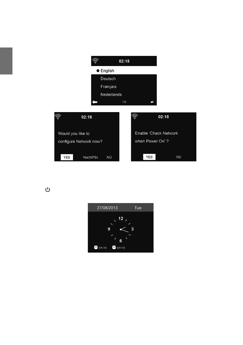 • Press (On/Off) to enter standby mode. The time, date and active alarms are shown on