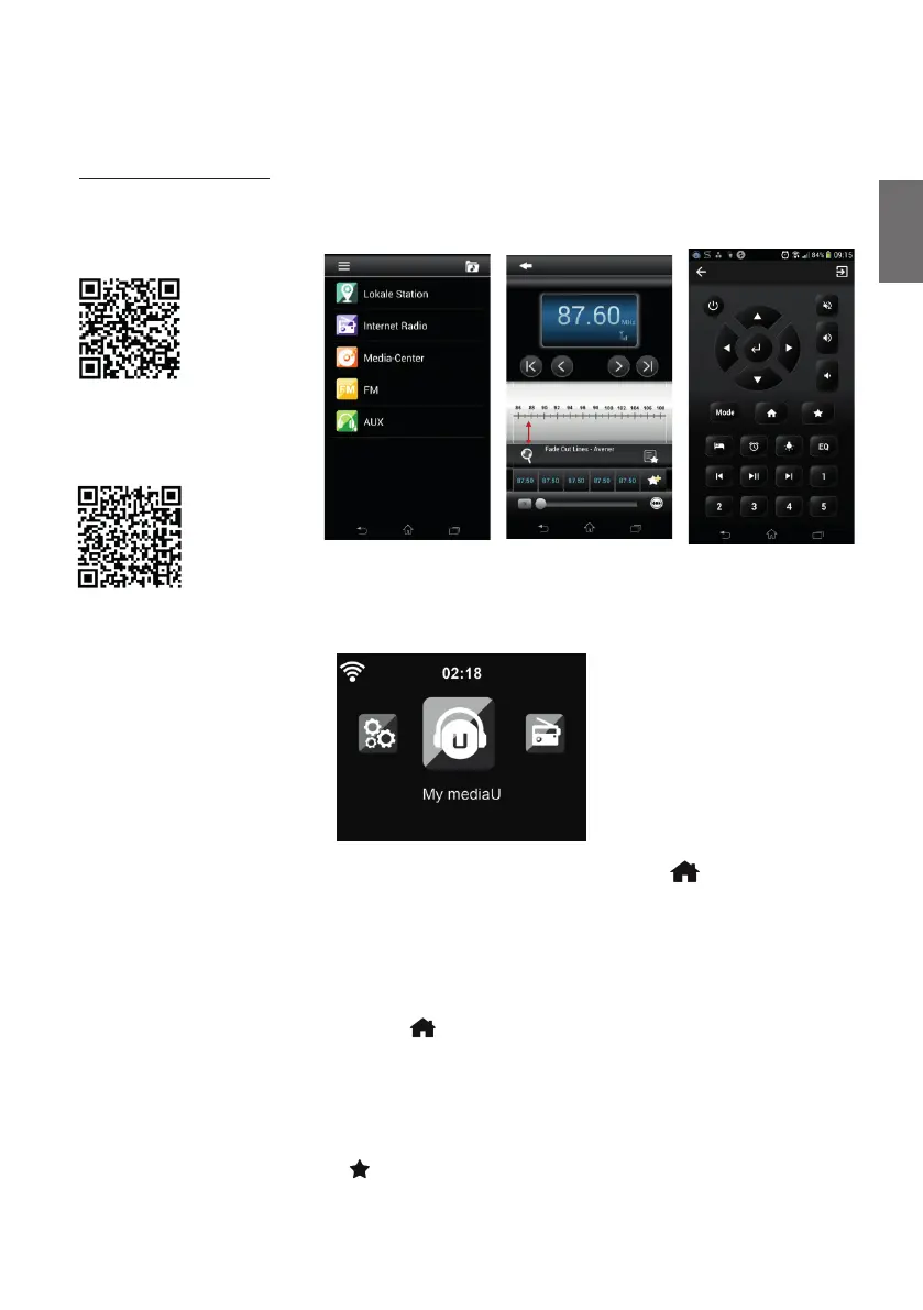 In the main menu you can select the following modes: Internet Radio, Media Center, FM, DAB+,