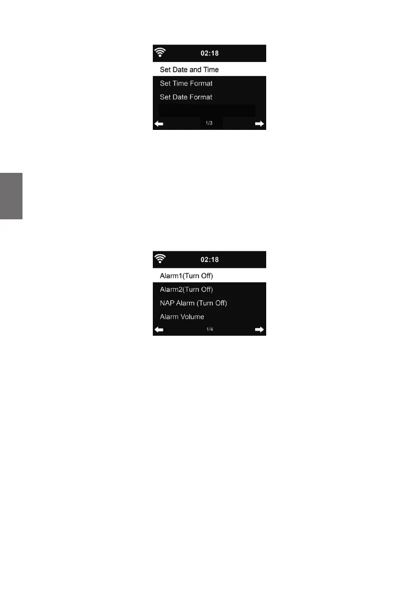 1 e Alarm 2) e una sveglia de nita in base all‘orario relativo (NAP Alarm). Premere Alarm sul