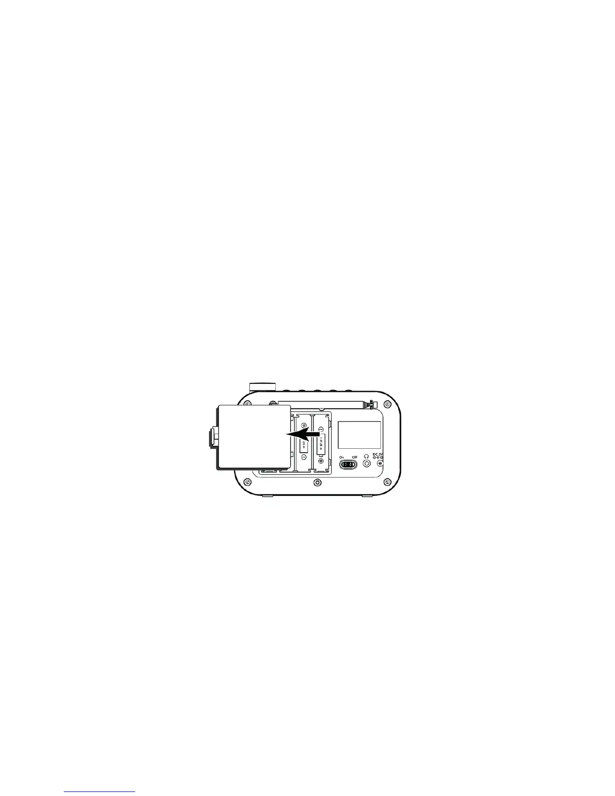 1. Avant d'installer les piles (non fournies), veillez à ce que la radio soit éteinte (positionnez
