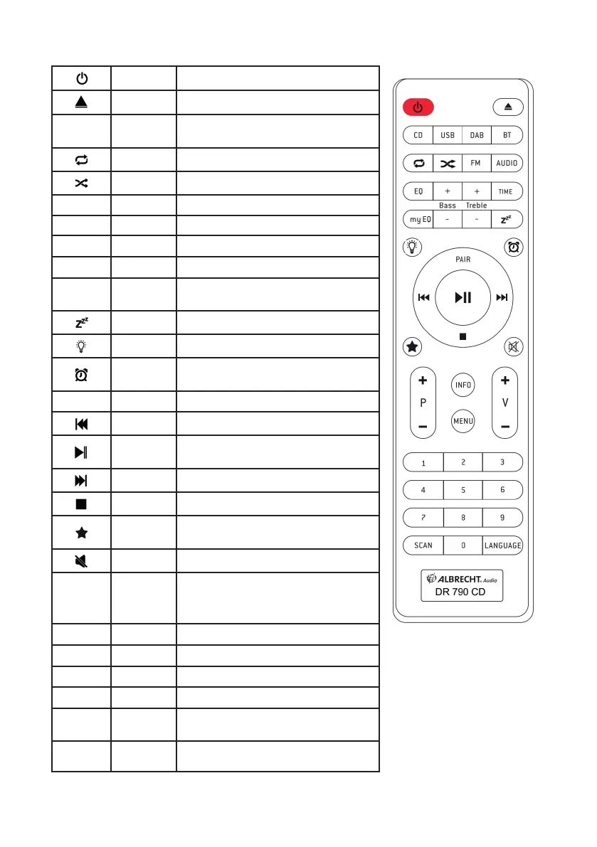 MENU Menu Open menu in DAB/FM mode