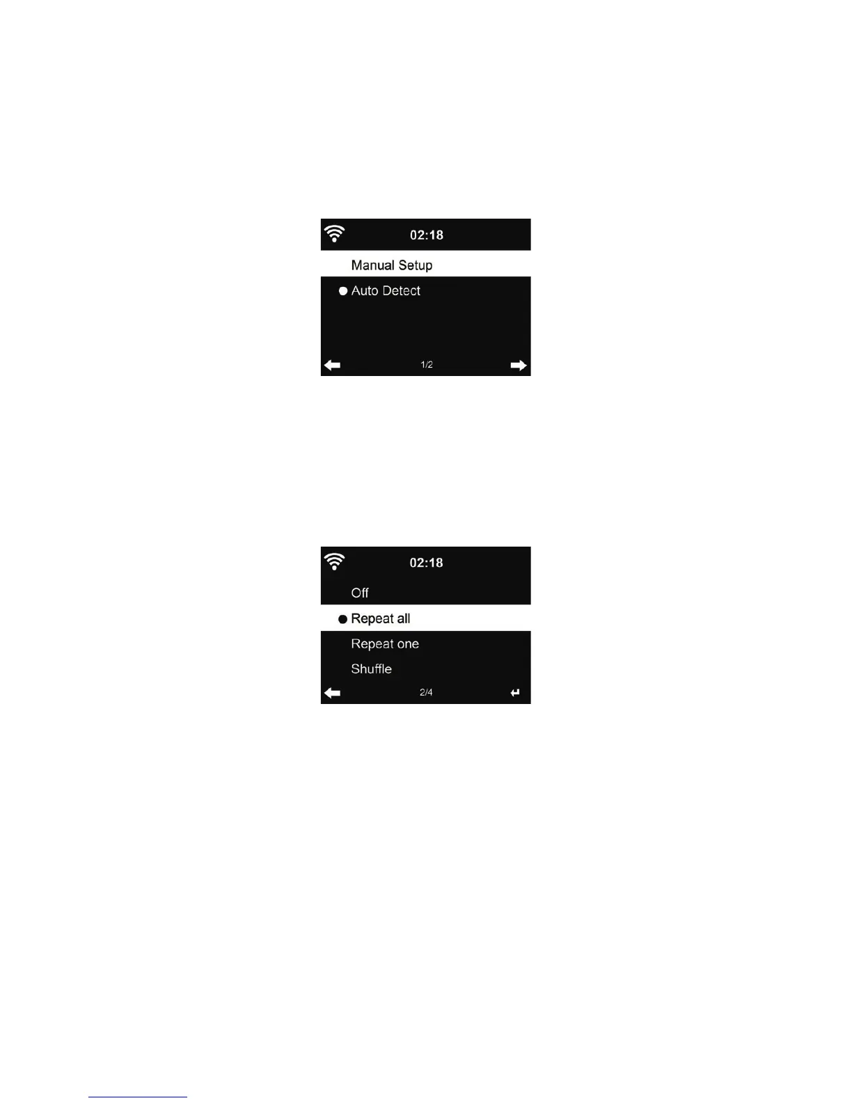 - Widerholen eins: wiederholt nur den gewählten Titel endlos.