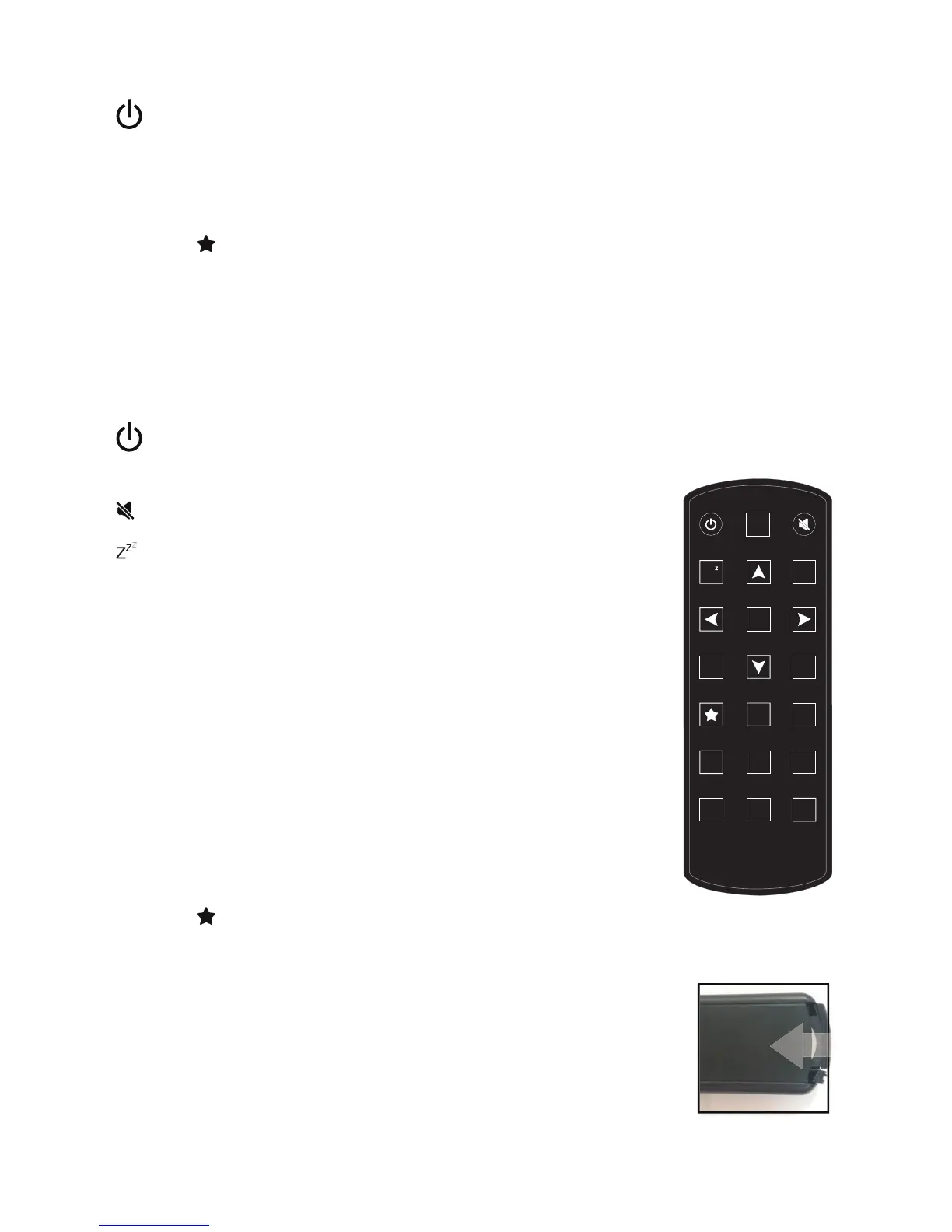 Battery: Before the rst use of the remote control you have to insert the