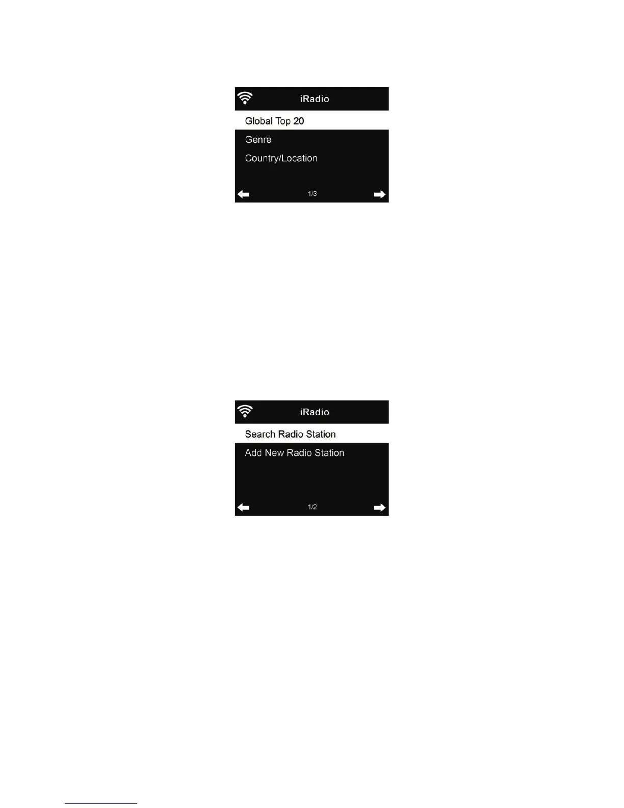 Les stations sont classées par Global Top 20, Genre et Country/Location. Il faut accéder pour