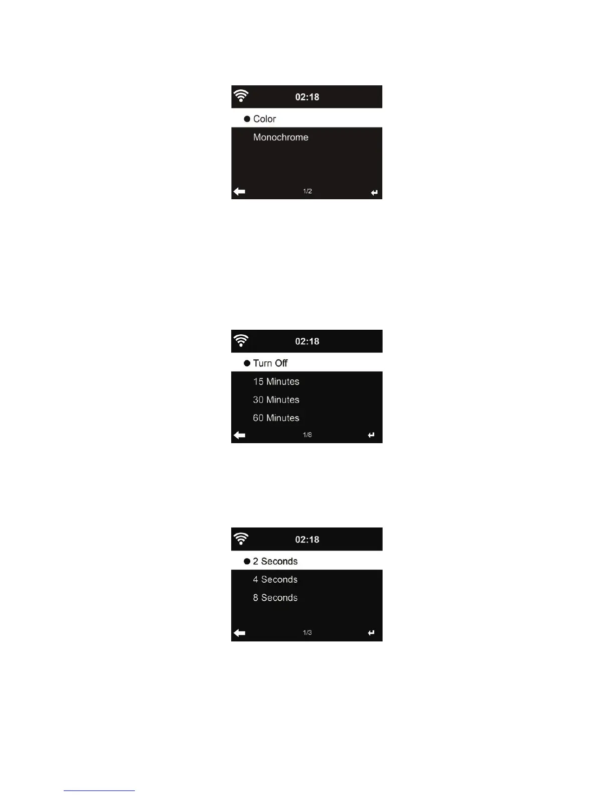 Sélectionnez le style d’af chage – en couleur (Color) ou monochrome (Monochrome).