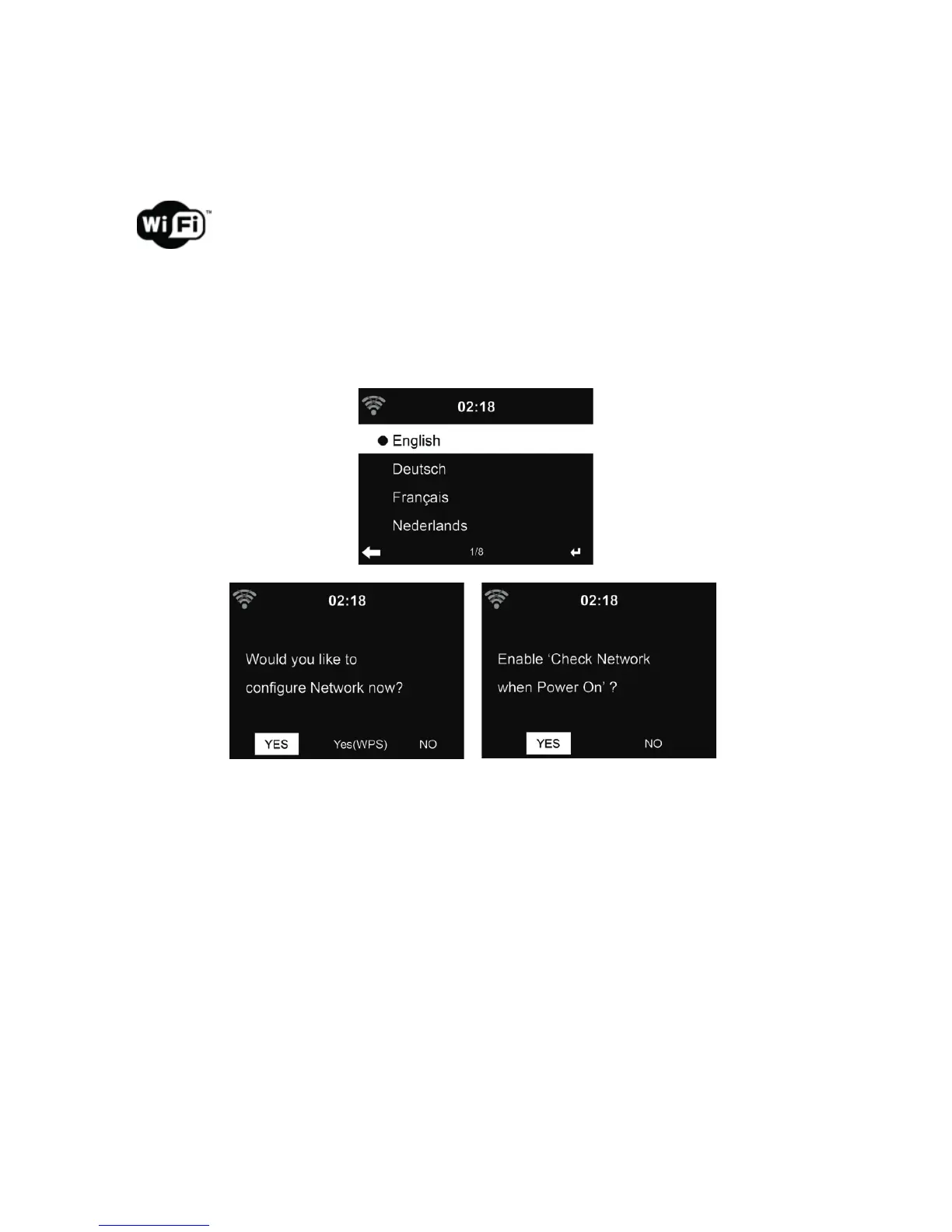 Alla prima attivazione del dispositivo, il sistema richiederà di inserire la Language e le Network