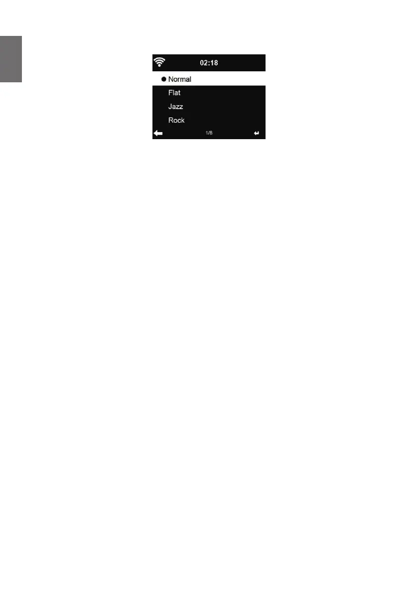 Wenn Sie bei einer Equalizer Voreinstellung ► drücken, können Sie individuell die Tiefen, Bässe