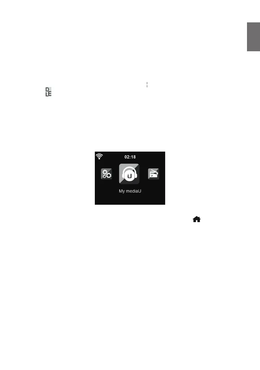 DAB+, Information-Center, AUX, Bluetooth, Einstellungen, Lokale Stationen und My mediaU.